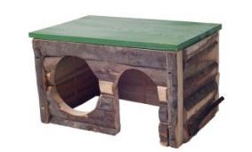 Houten blokhut medium is een schuilplaats die ideaal is voor: ratten, cavia’s, chinchilla’s en dwergkonijnen. Afmeting: ± 29x19x17 cm.